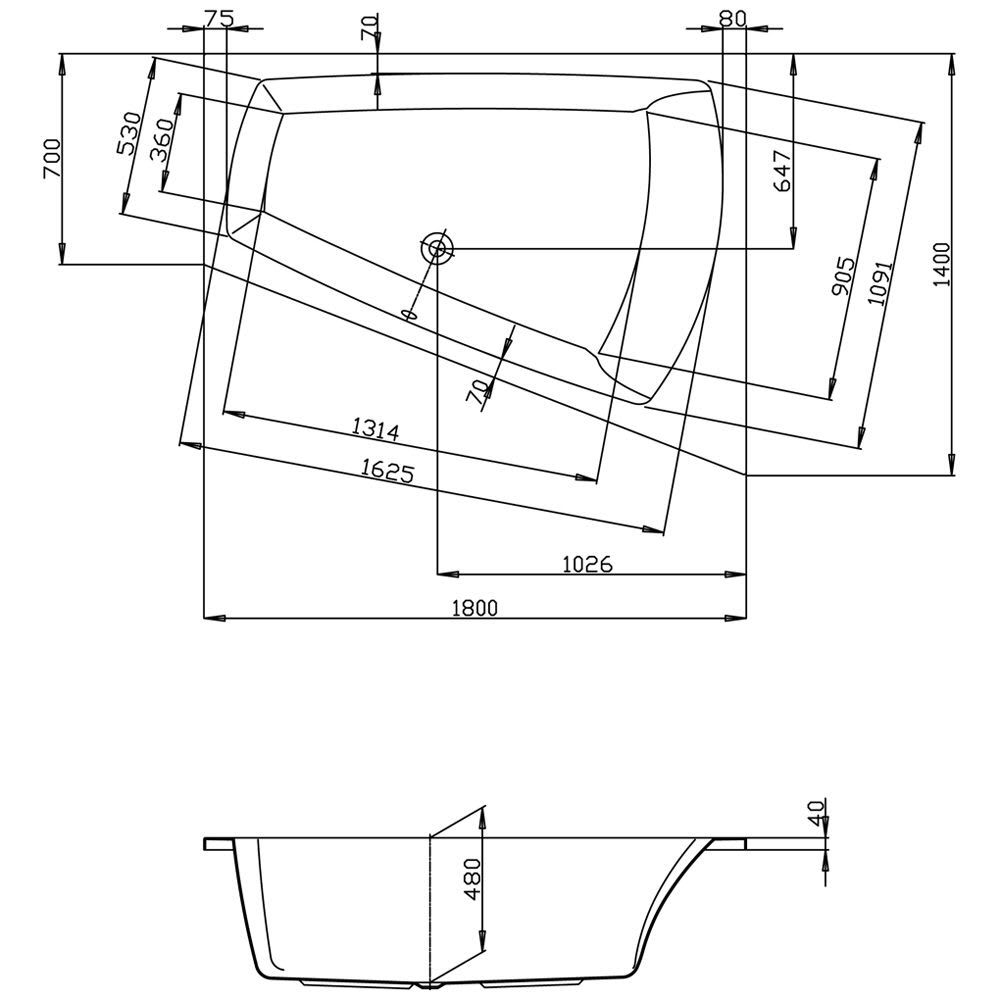 Hoesch Largo Eck-Badewanne 180 x 140 cm rechte Ausführung, mit Glasverkleidung