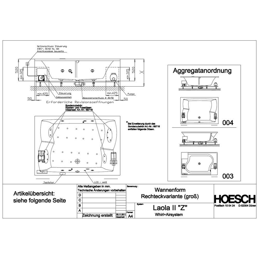 Laola II Whirl + Air mit 6 Whirl- 23 Airdüsen, Aggregatanordnung rechts und links