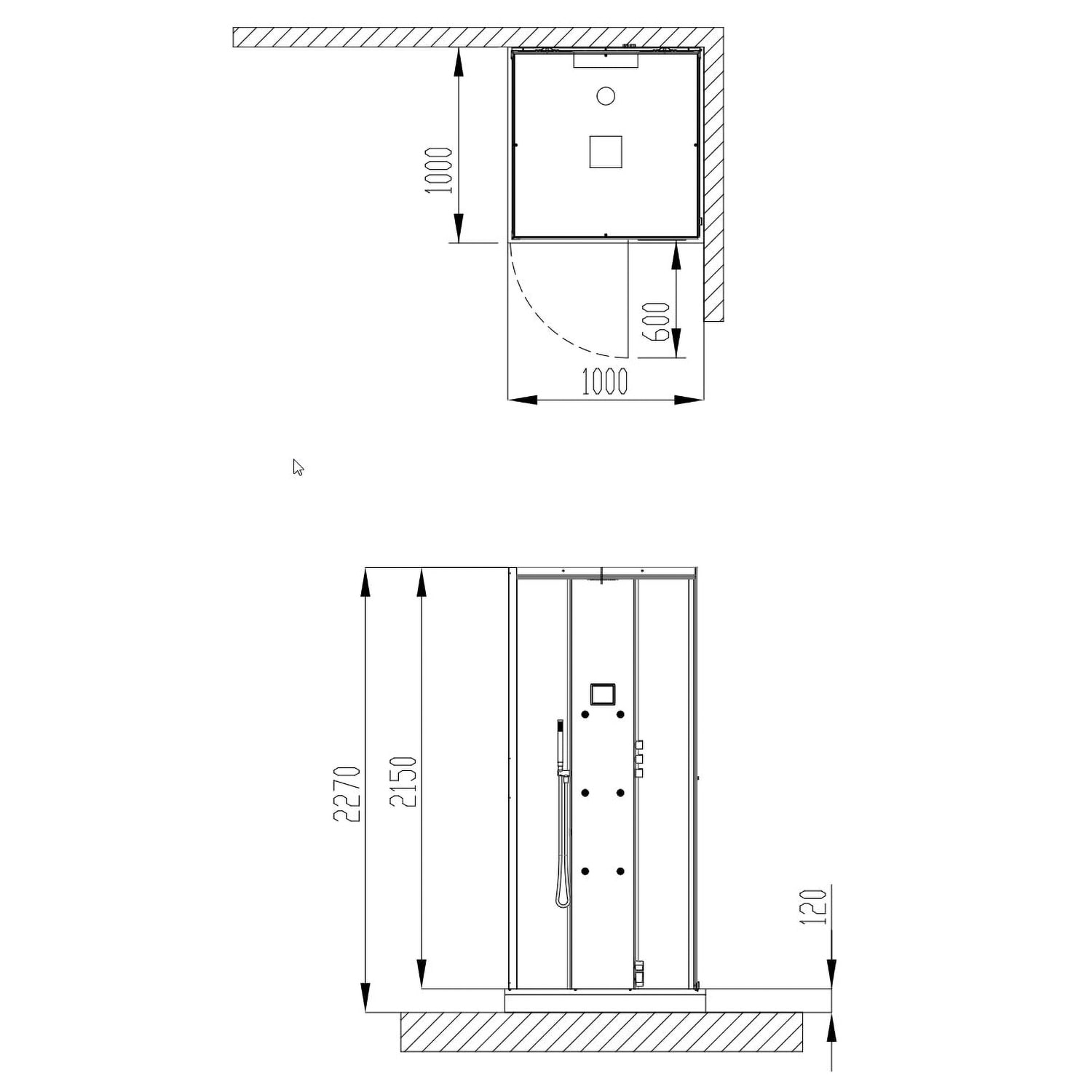 Die Deckenhöhe am Aufstellort sollte mindestens 12 cm mehr als die Kabinenhöhe betragen.