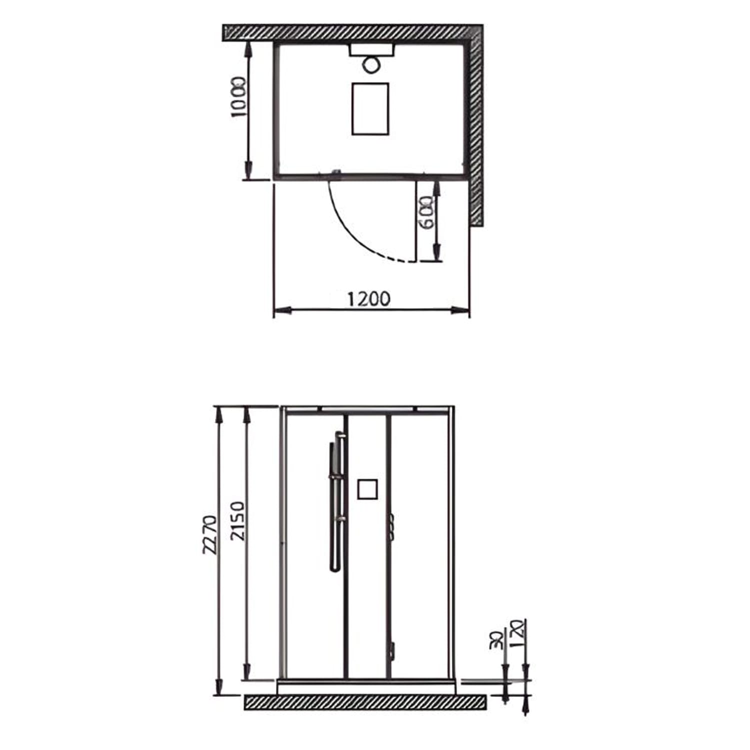 Die Deckenhöhe am Aufstellort sollte min. 12 cm mehr als die Kabinenhöhe betragen.