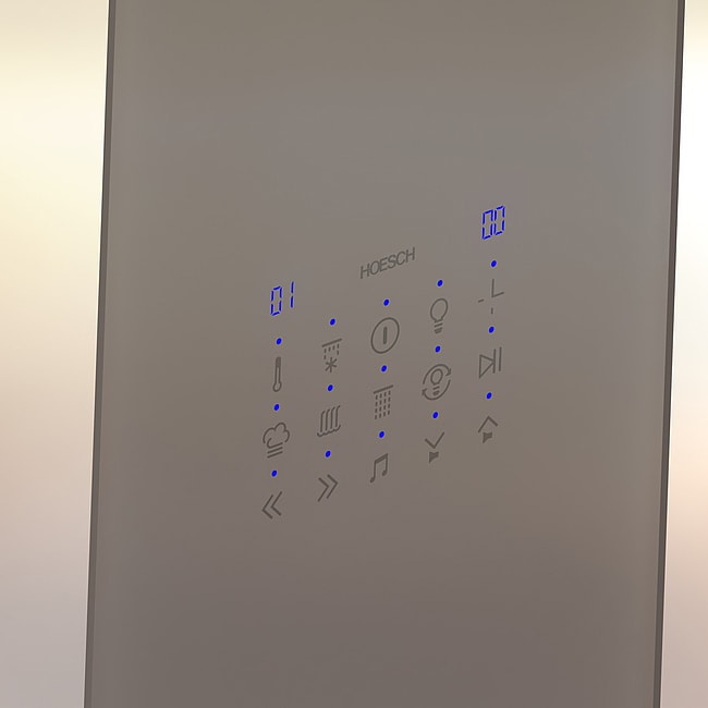 - In Glasoberfläche integriertes, kapazitives Bedientableau