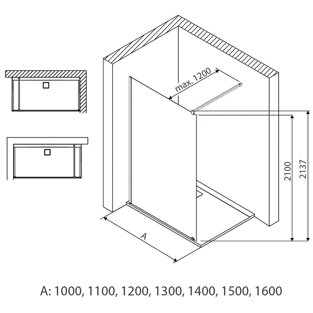 - Verstellbereich: Wandanschlussprofil +/- 10 mm