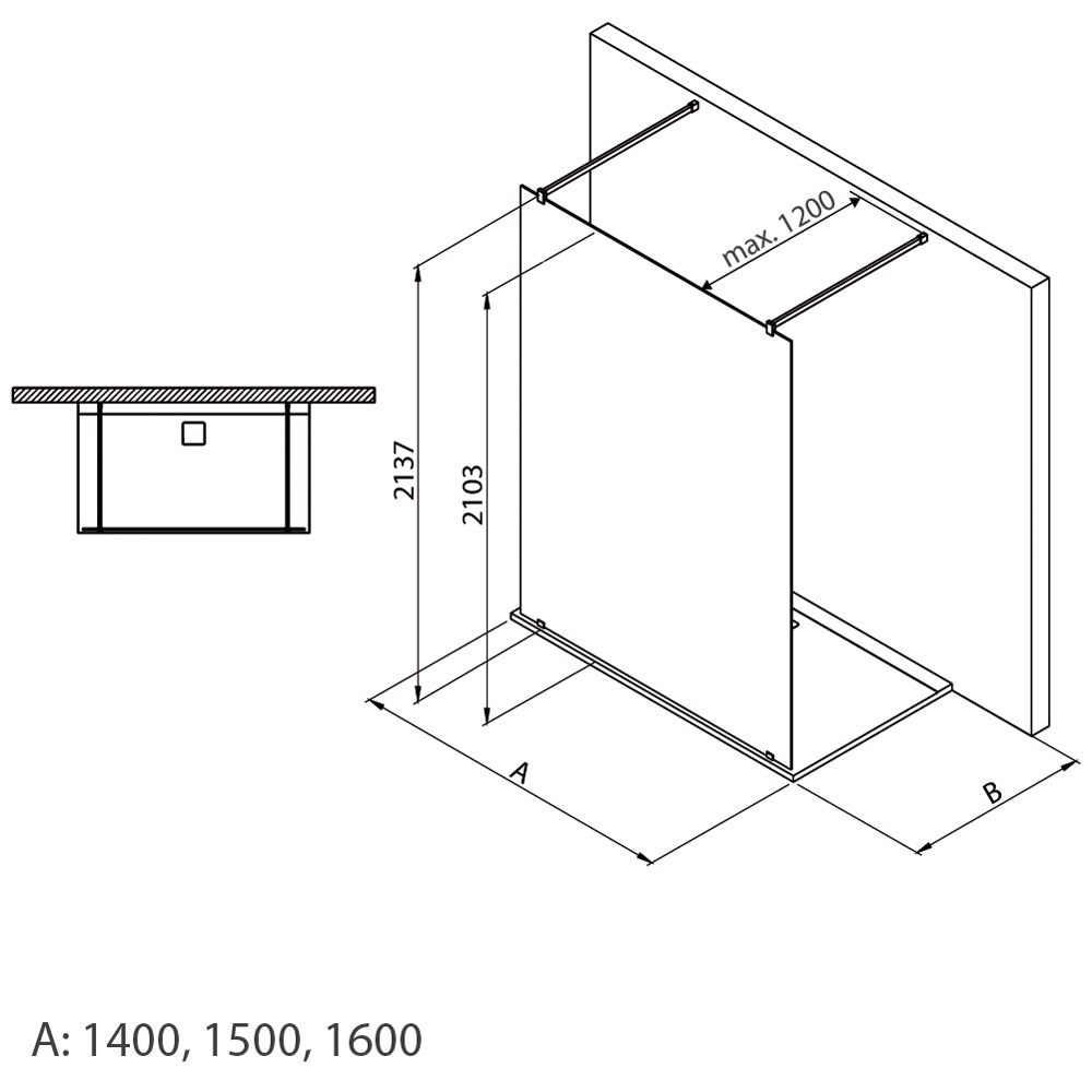 - Wannenmaß A: 160 cm