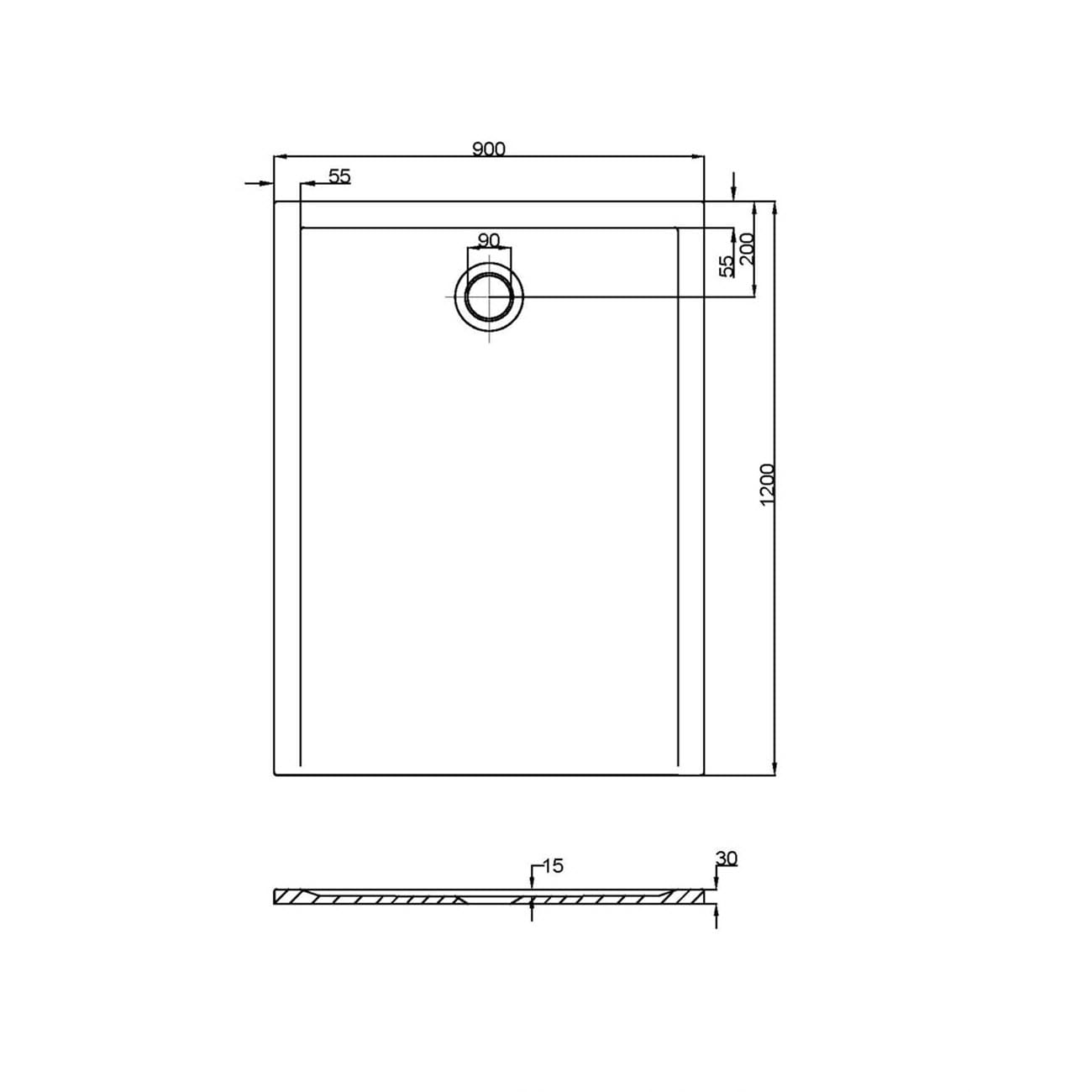 pianura Emilia mineral Duschwanne 120 x 90 x 3 cm