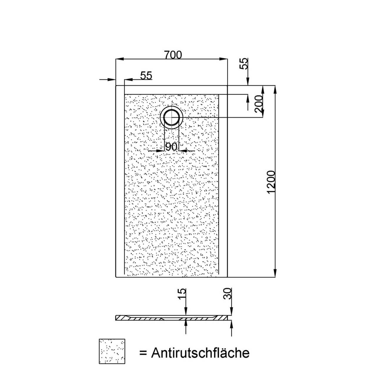 Hoesch Muna S Rechteckduschwanne 120 x 70 cm mit Antirutsch