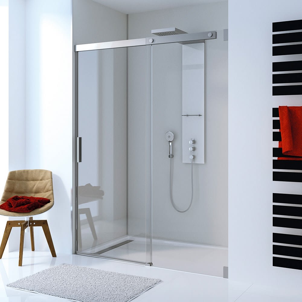 - Optimal für eine Raumnische geeignet ist diese Gleittür von HSK. Die Verarbeitungsqualität und das rahmenlose Design wissen zu begeistern.