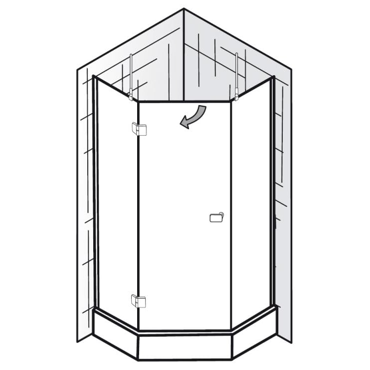 Diese 3-teilige Fünfeckdusche besteht aus einer Tür und zwei Festelementen. Ein Magnet-Dichtprofil gewährleistet, dass das Türelement zuverlässig schließt und keine ungewünschte Feuchtigkeit nach außen dringt.