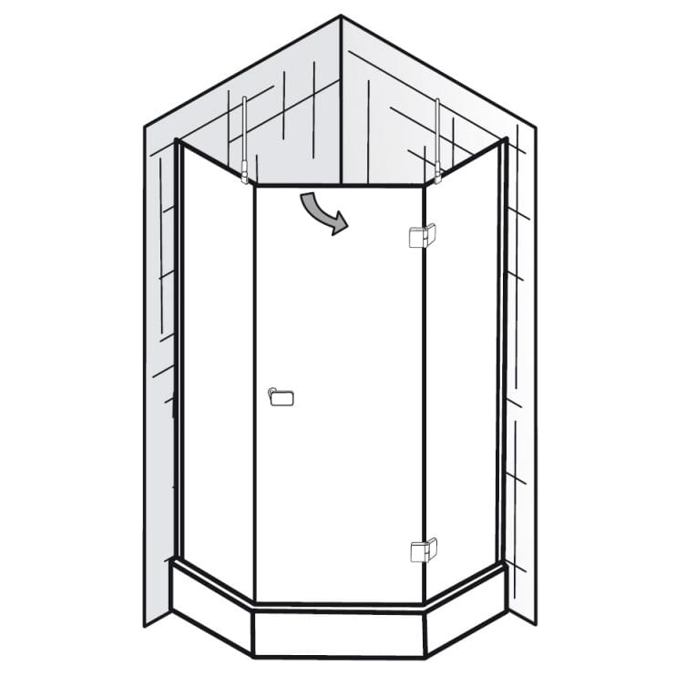 Diese 3-teilige Fünfeckdusche besteht aus einer Tür und zwei Festelementen. Ein Magnet-Dichtprofil gewährleistet, dass das Türelement zuverlässig schließt und keine ungewünschte Feuchtigkeit nach außen dringt.