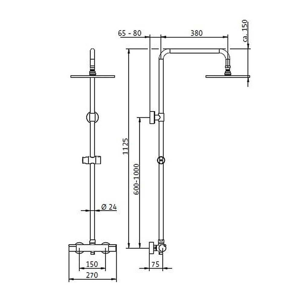 HSK Shower-Set Modell RS 100 Thermostat, Kopfbrause flach, rund 25 cm