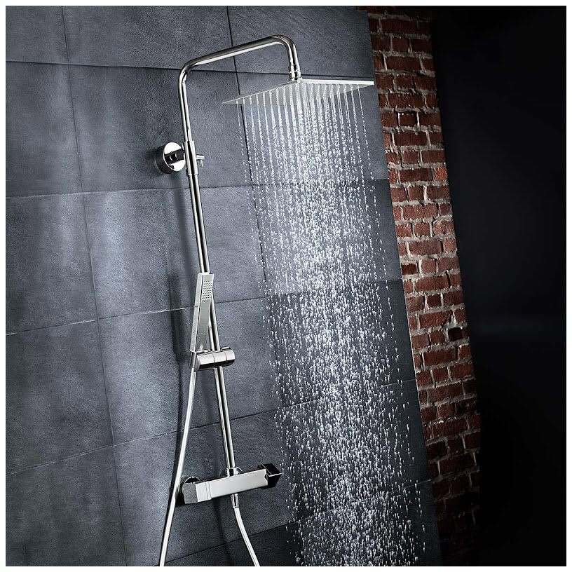 HSK Shower-Set Modell RS 500 Thermostat eckig, Kopfbrause flach, eckig 30 x 30 cm