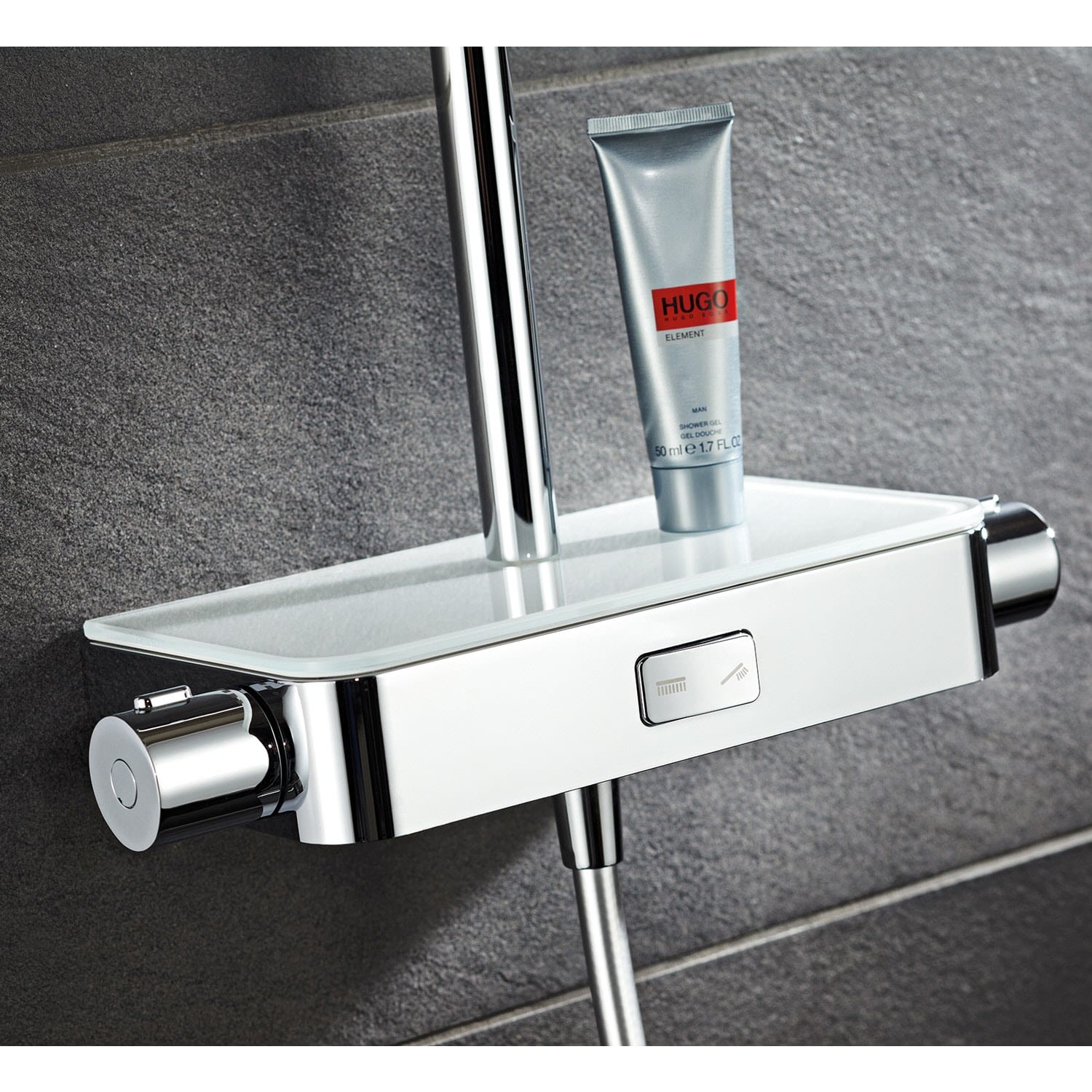 - Thermostatarmatur mit AquaSwitch-Technik und Glasablage