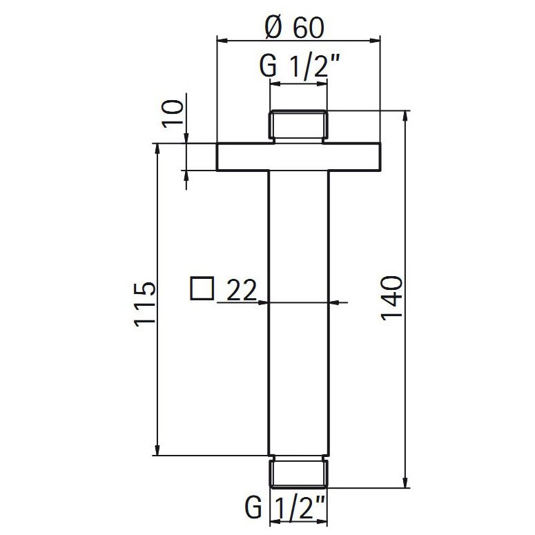 HSK Deckenarm eckig, 14 cm