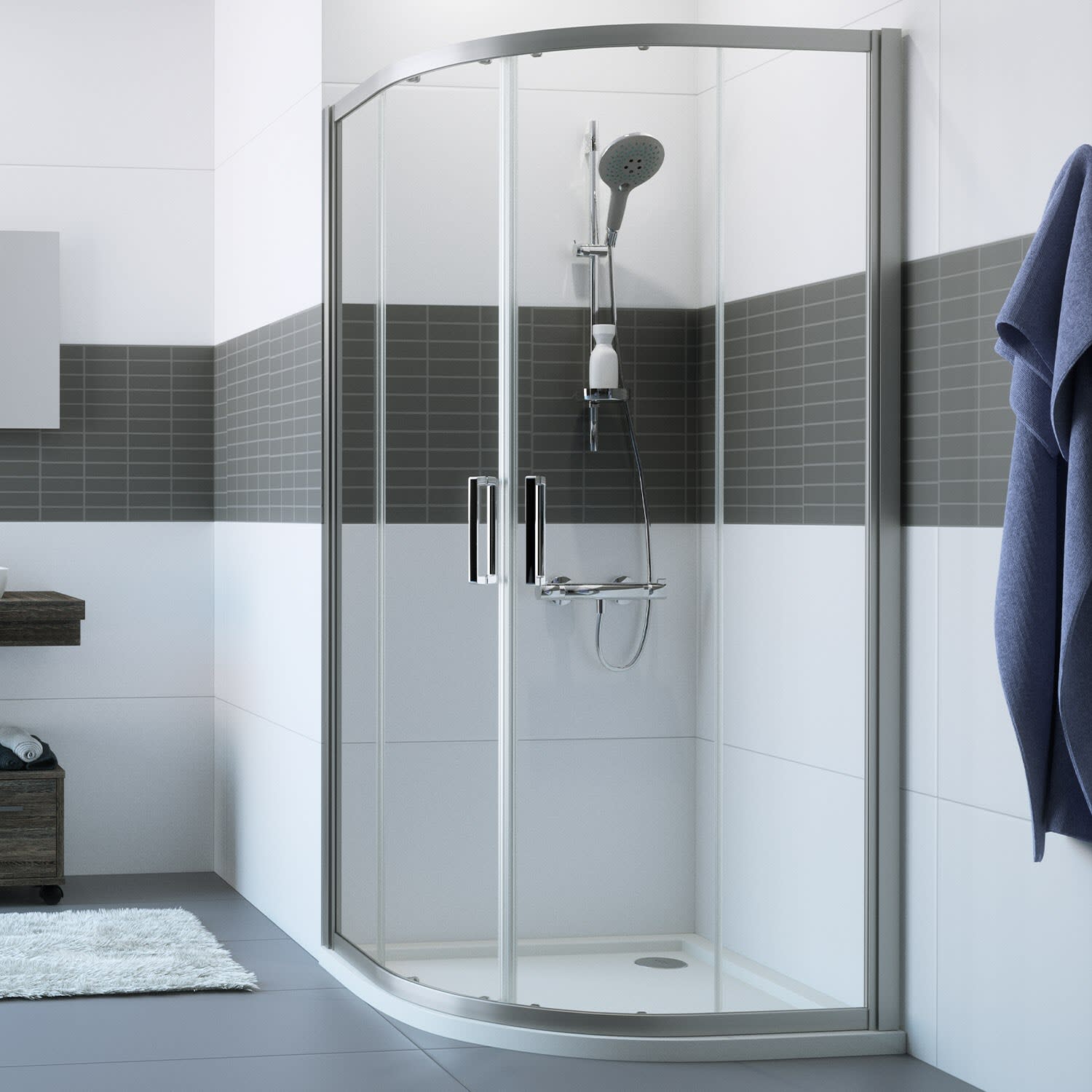HÜPPE Classics 2 Gleittür 1/4 Kreis mit Festteilen 80/100 x 200 cm, R= 50 cm, Glas ohne Anti-Plaque
