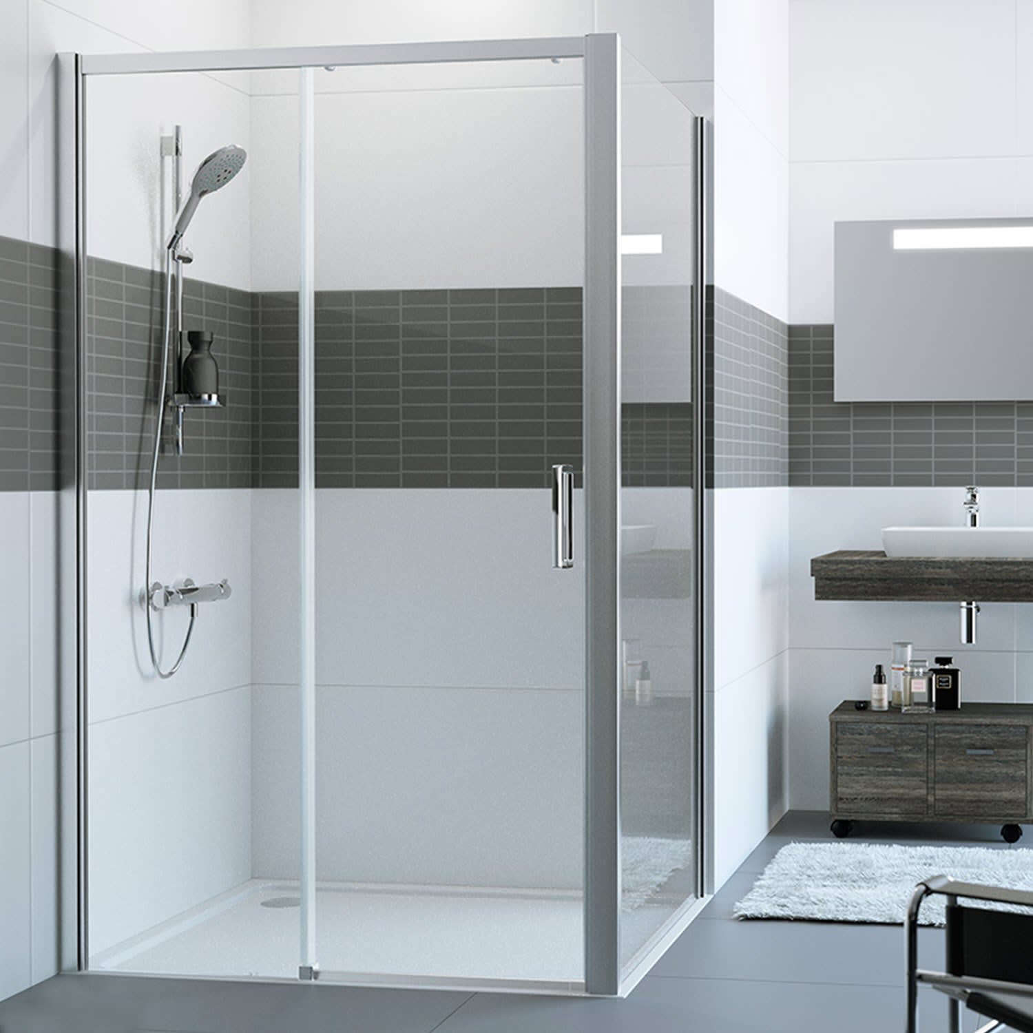 - zum Einbau in einer Nische und zur Kombination mit Classics 2 EasyEntry Seitenwand für Gleittür
