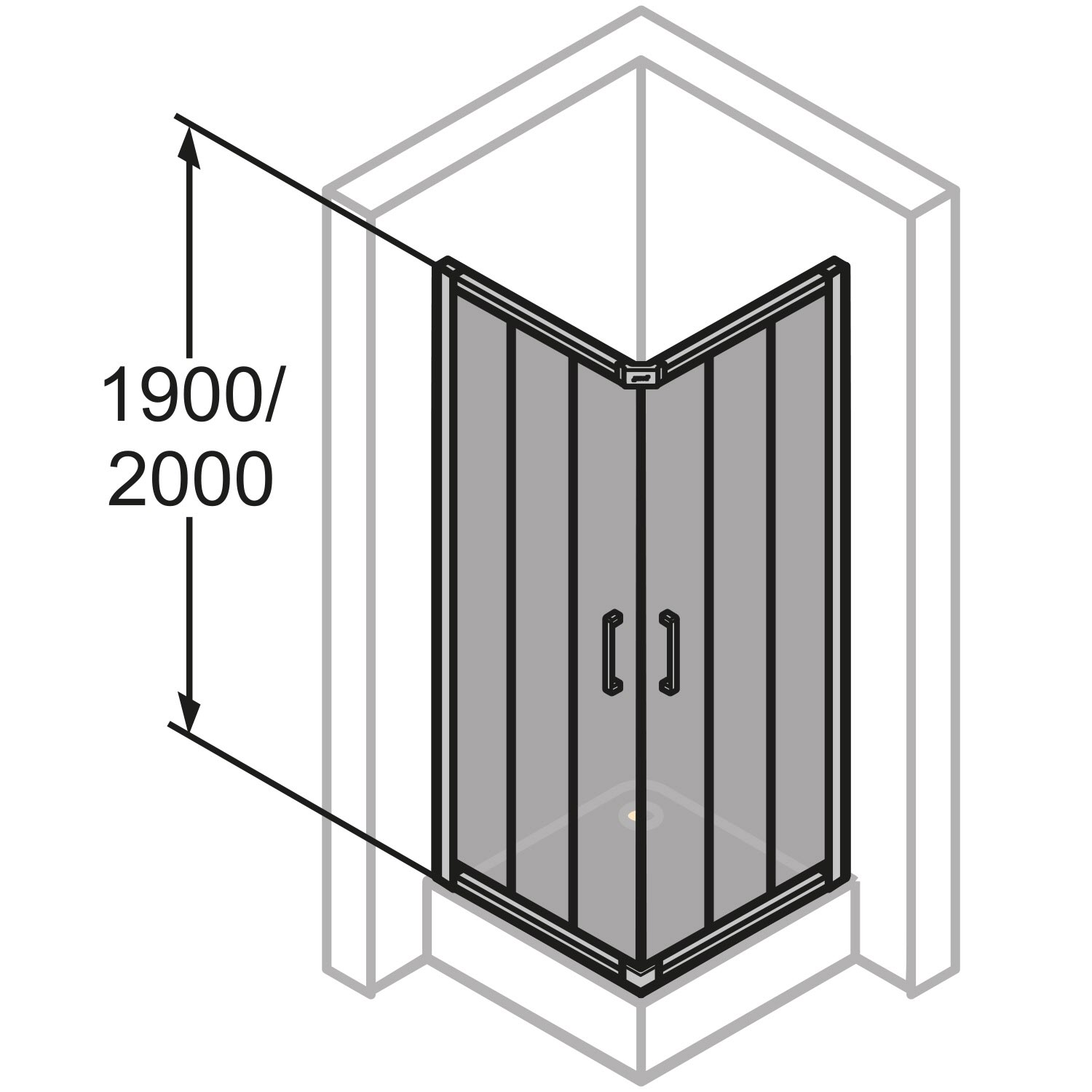 Die angegebenen Abmessungen der Duschkabine beziehen sich nur für Montage auf Duschwannen. Für bodengleiche Montage weichen die Maße ab, bitte vor Bestellung die genauen Abmessungen vom Duschbereich angeben!