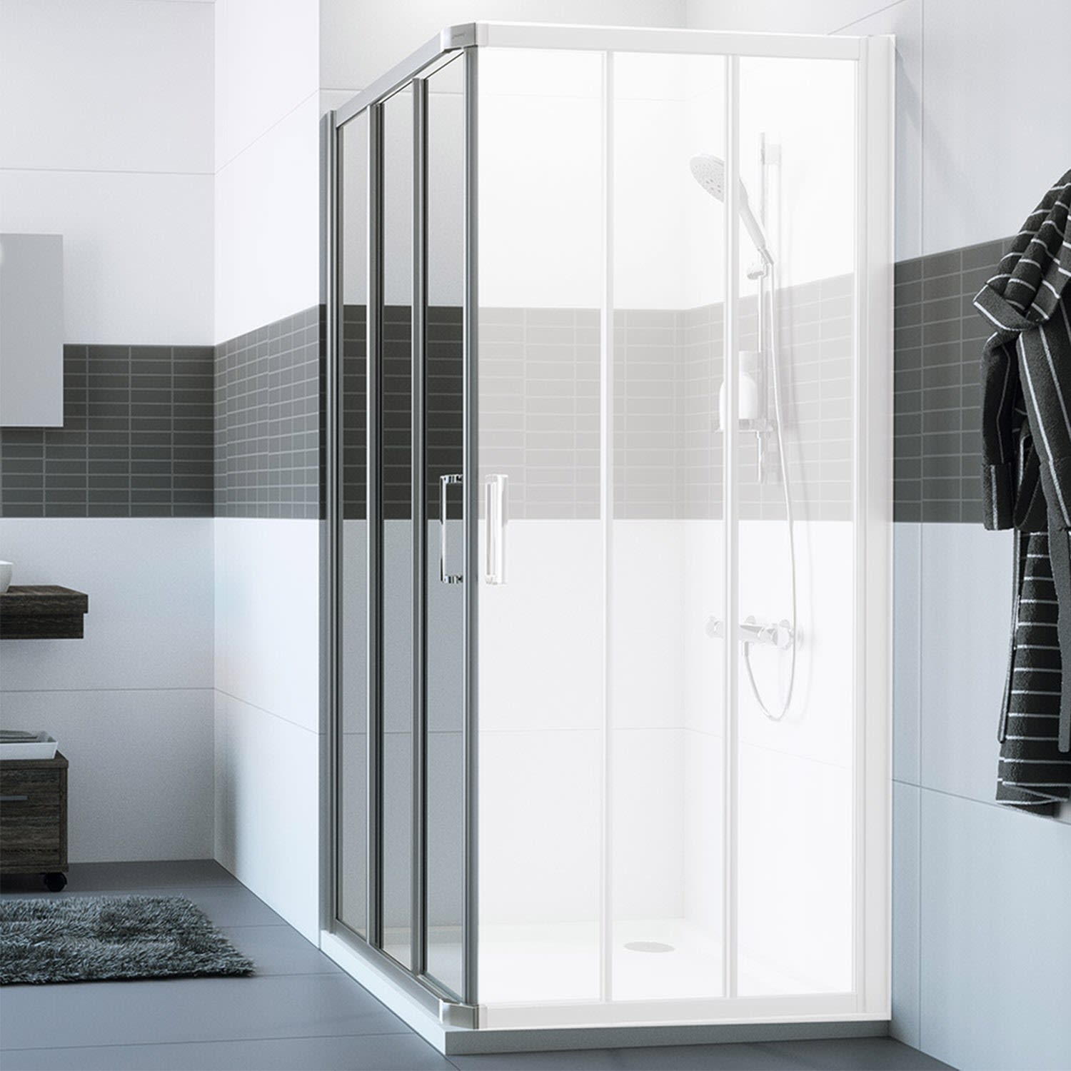 Für eine vollständige Duschabtrennung werden zwei Halbteile benötigt!
