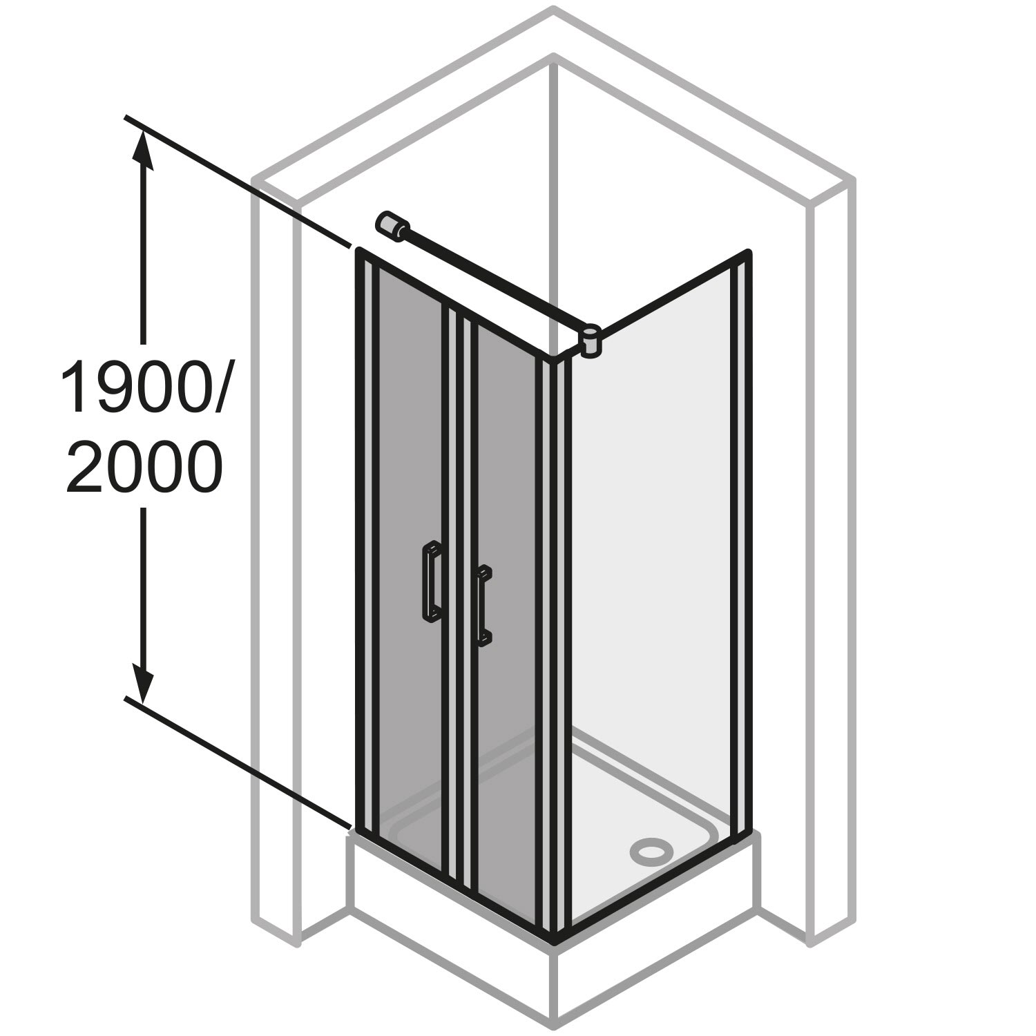 Die angegebenen Abmessungen der Duschkabine beziehen sich nur für Montage auf Duschwannen. Für bodengleiche Montage weichen die Maße ab, bitte vor Bestellung die genauen Abmessungen vom Duschbereich angeben!