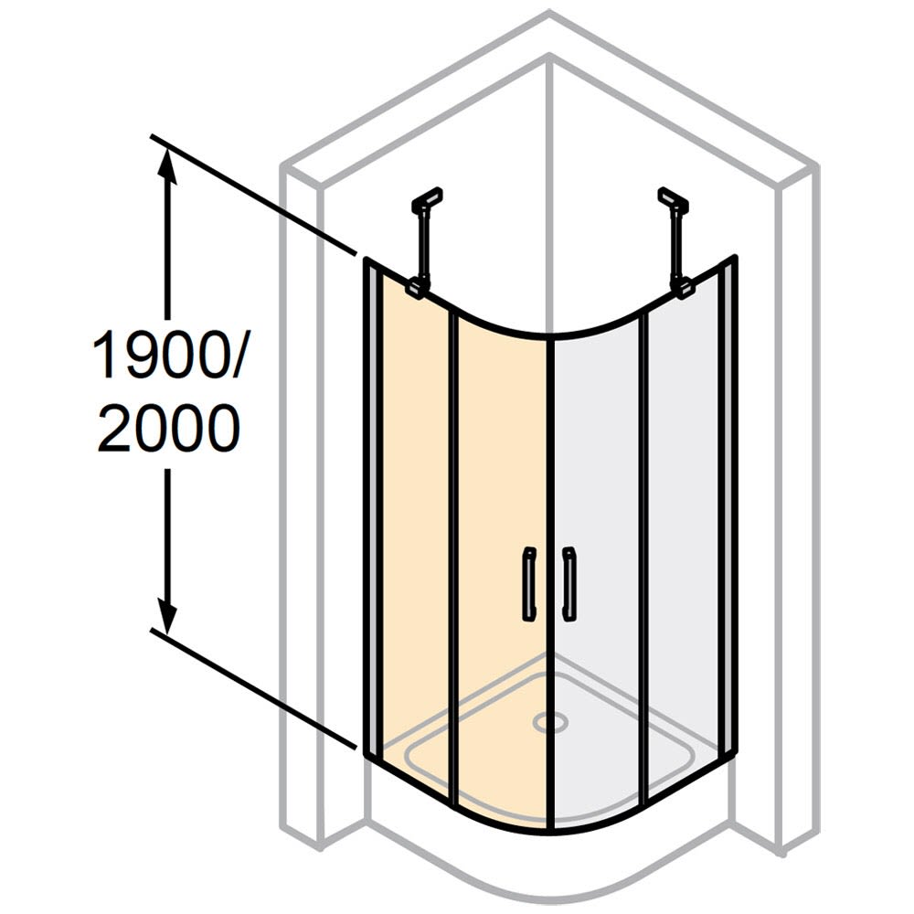 HÜPPE Classics 2 1/4 Kreis Schwingtür mit Festteil 80 x 190 cm, R= 55 cm, Glas mit Anti-Plaque