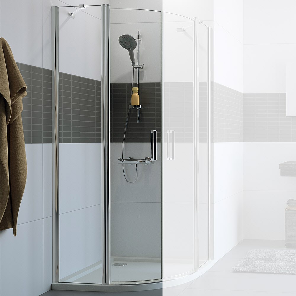 HÜPPE Classics 2 1/4 Kreis Schwingtür mit Festteil 90 x 200 cm, R= 50 cm, Glas mit Anti-Plaque