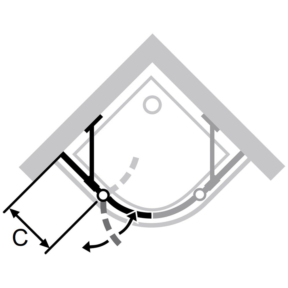 - teilgerahmte Viertelkreis-Tür nach innen und außen öffnend und einem festen Segment als 1 Halbteil