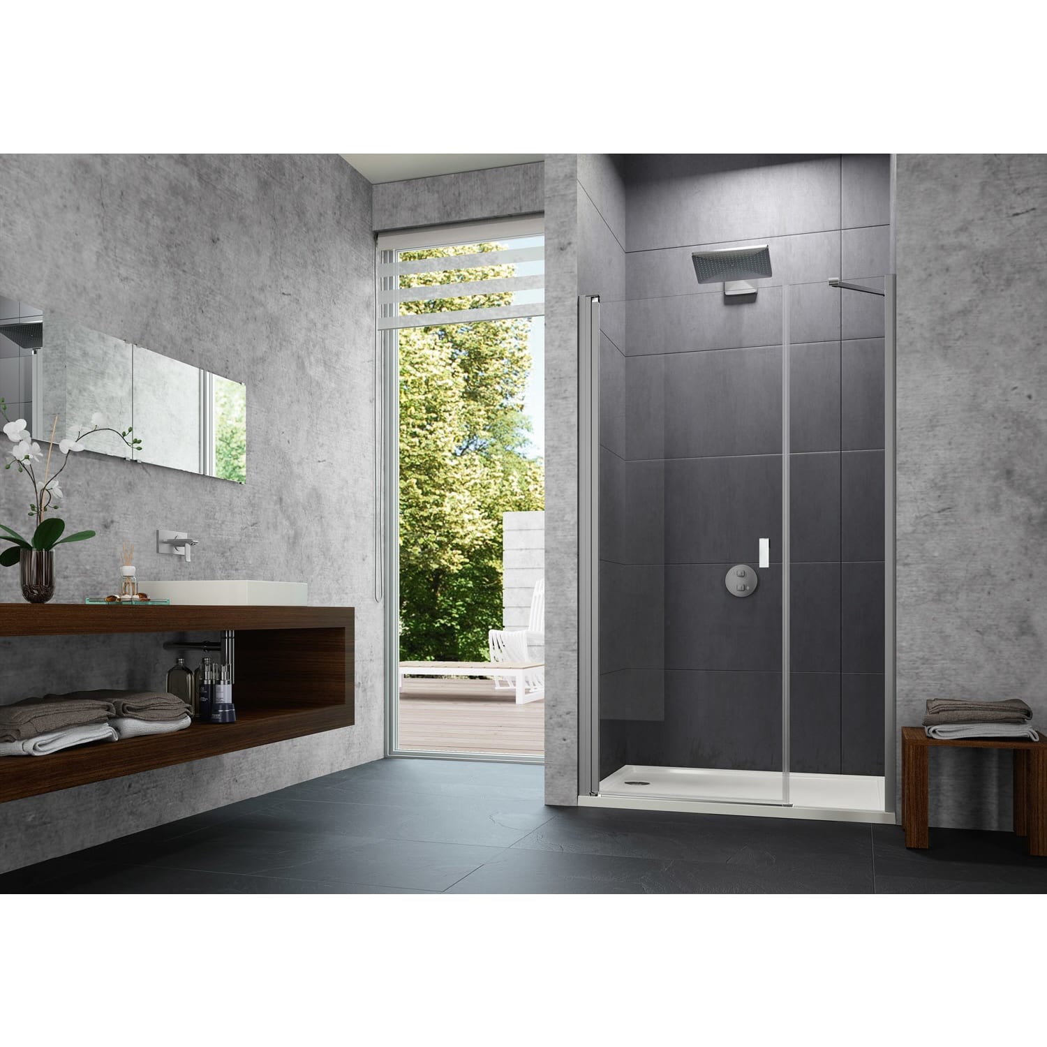 - mit Schwallschutzleiste (Höhe 1 cm) für optimale Dichtigkeit, oder schwellenlos installierbar