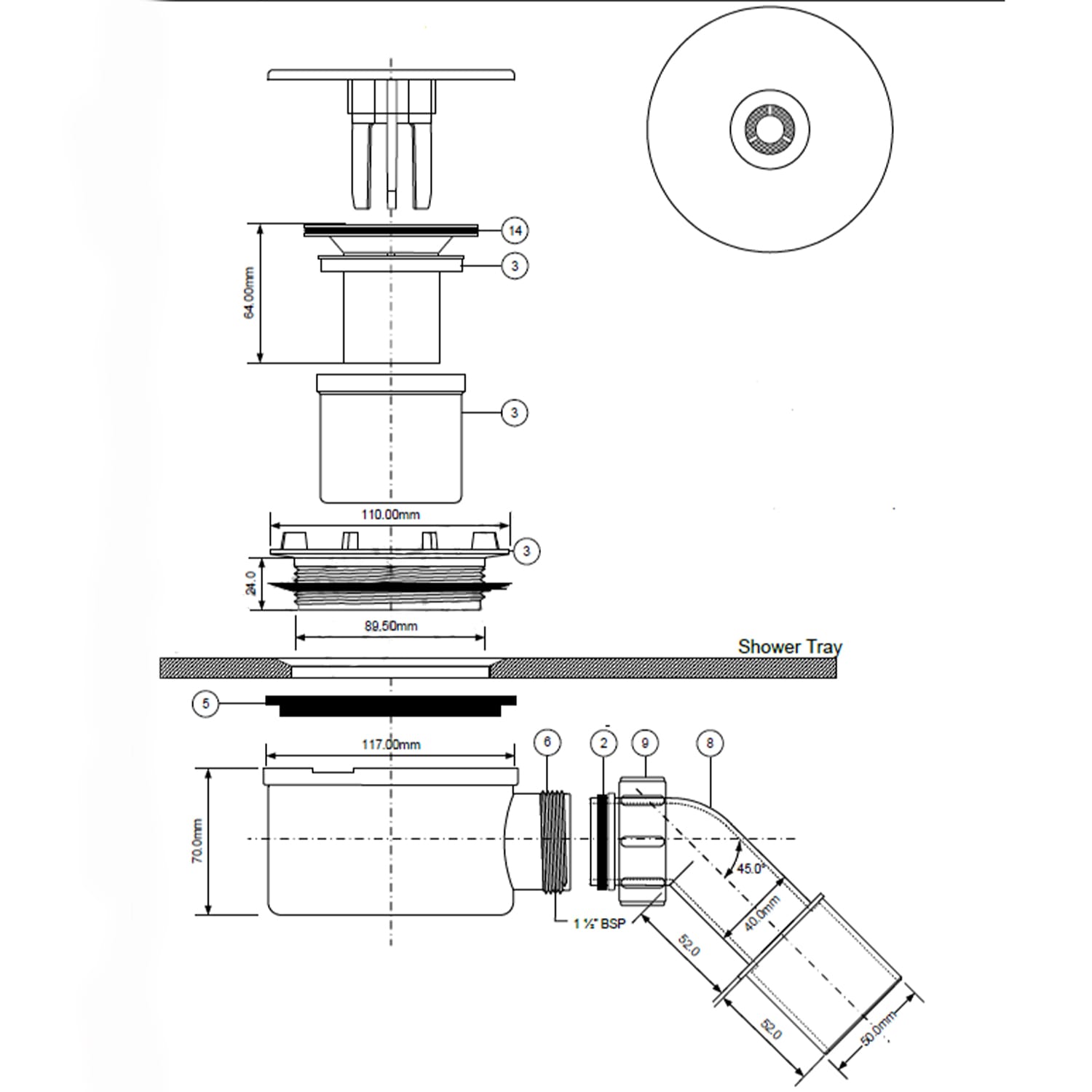 HÜPPE EasyStep Ablaufgarnitur und Ablaufkappe rund, Aufbauhöhe 7 cm