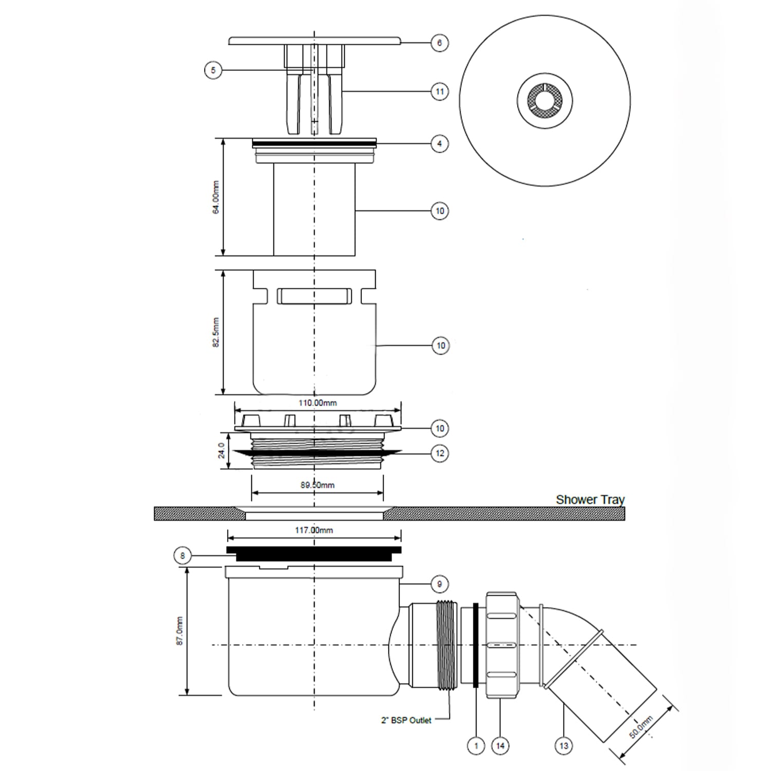 HÜPPE EasyStep Ablaufgarnitur und Ablaufkappe rund, Aufbauhöhe 9 cm