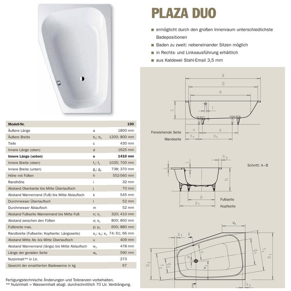 Kaldewei Plaza Duo rechts 190 Eckbadewanne mit Spektrallicht und Weißlicht