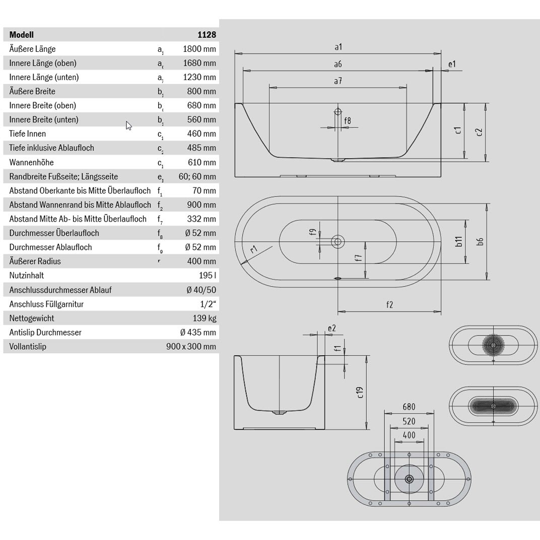 - inkl. Spezial Ab- und Überlaufgarnitur KA 4040 mit emailliertem Ab- und Überlauf