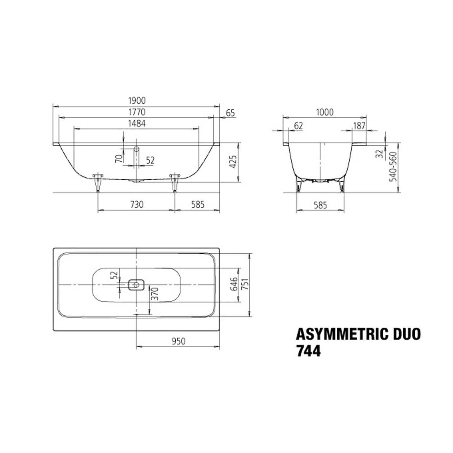 Kaldewei Asymmetric Duo 744 Badewanne 190 x 100 cm mit Griffbohrung