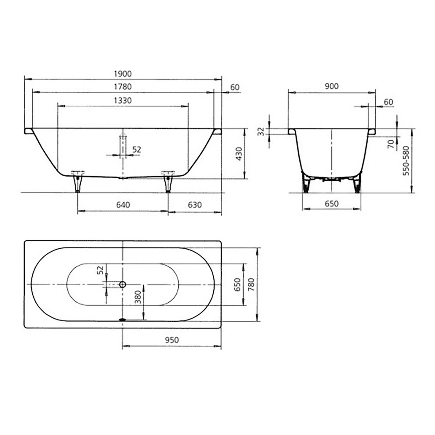 Kaldewei CLASSIC DUO Mod. 114 Badewanne 190 x 90 cm, mit Grifflöcher