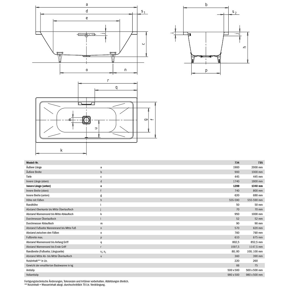 Kaldewei Conoduo 735 Badewanne 200 x 100 cm mit Vollantislip