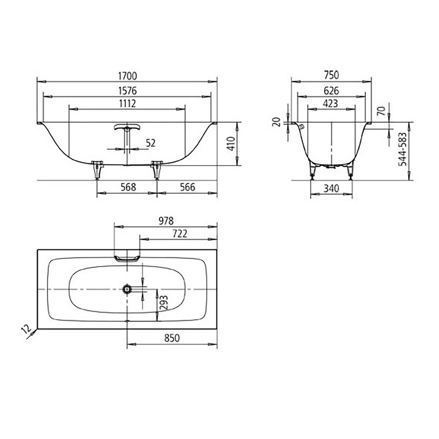 Sturotec Wannenträger für Kaldewei Silenio Rechteckbadewanne 170 x 75 cm