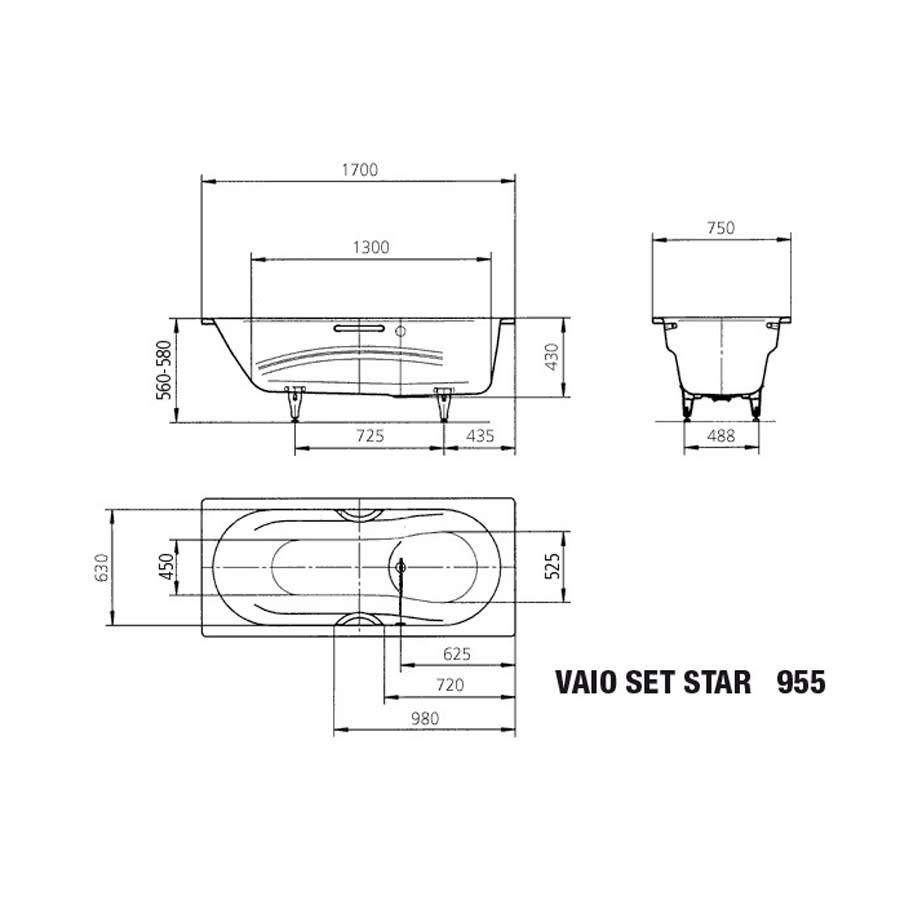 Kaldewei Vaio Set Star 955 Badewanne 170 x 75 cm mit Griffbohrung und Vollantislip