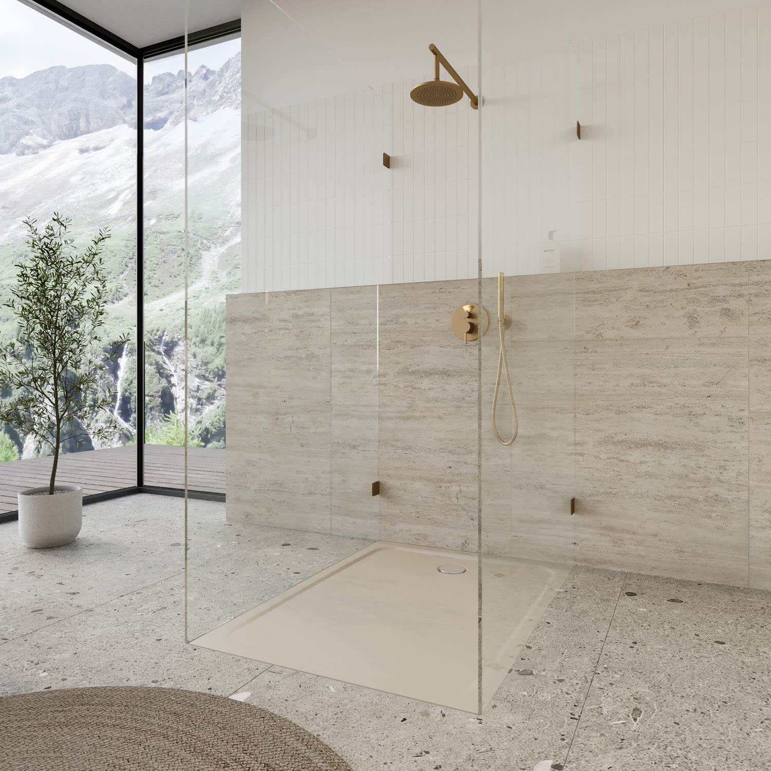 - bodenebene Duschfläche mit umlaufender Prägung