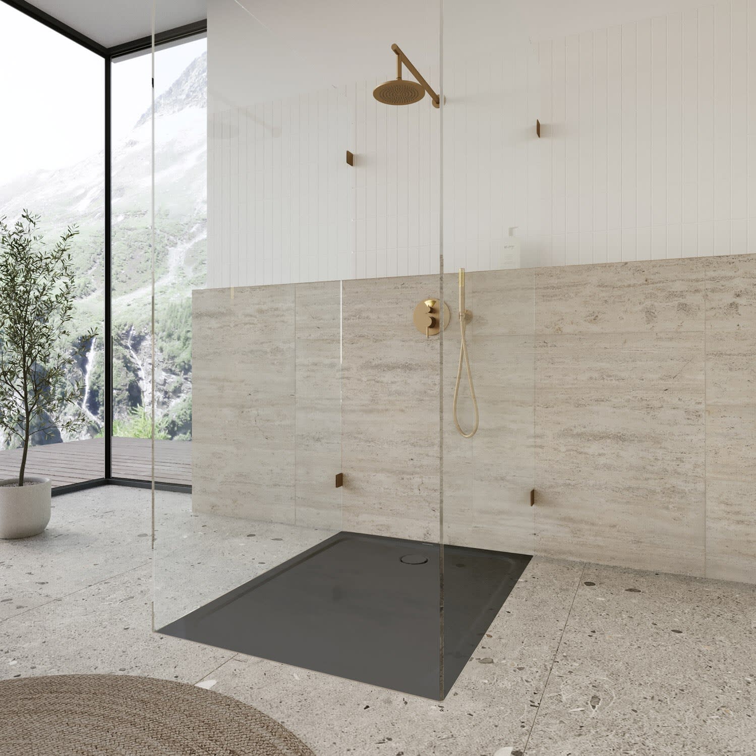 - bodenebene Duschfläche mit umlaufender Prägung