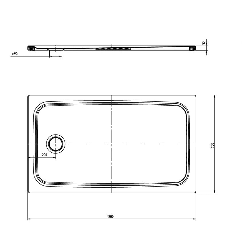 - zusätzlich mit rutschhemmender Antislip - Emaillierung (37,5 x 53,5 cm) mittig in der Duschwanne