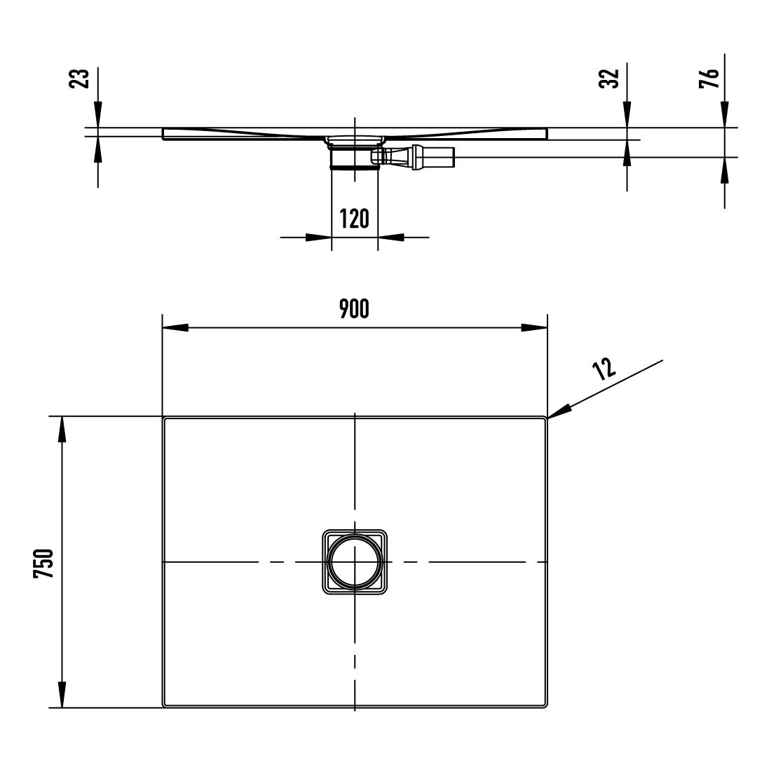 - Ablaufposition mittig mit Ablaufloch Ø 12 cm