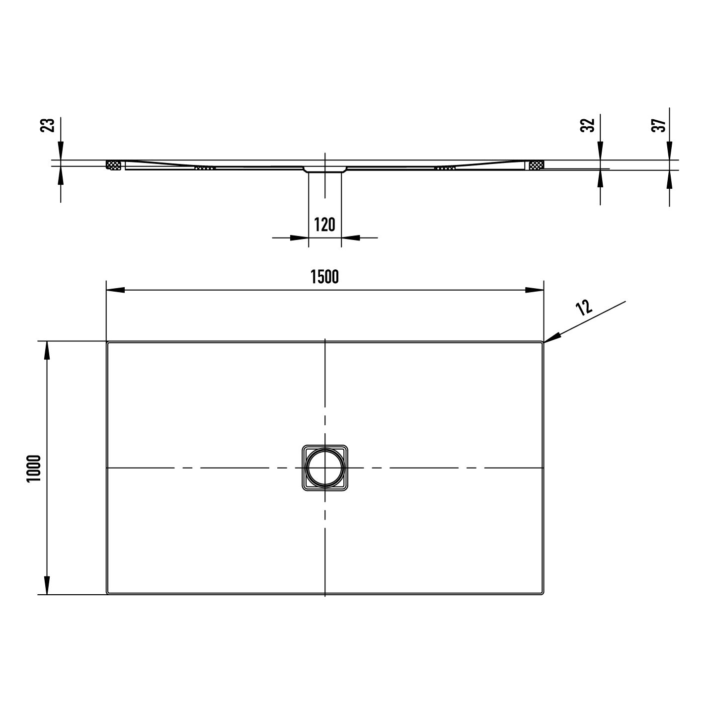 - Ablaufposition mittig mit Ablaufloch Ø 12 cm