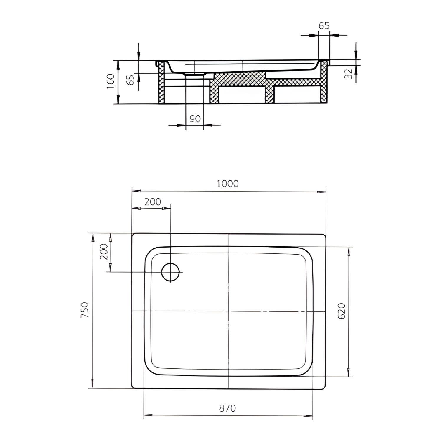 Kaldewei Duschplan 416-2 Duschwanne 75 x 100 x 6,5 cm mit Wannenträger