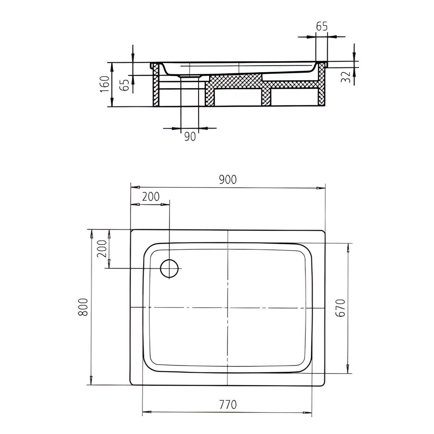 - Ablaufloch Ø 9 cm