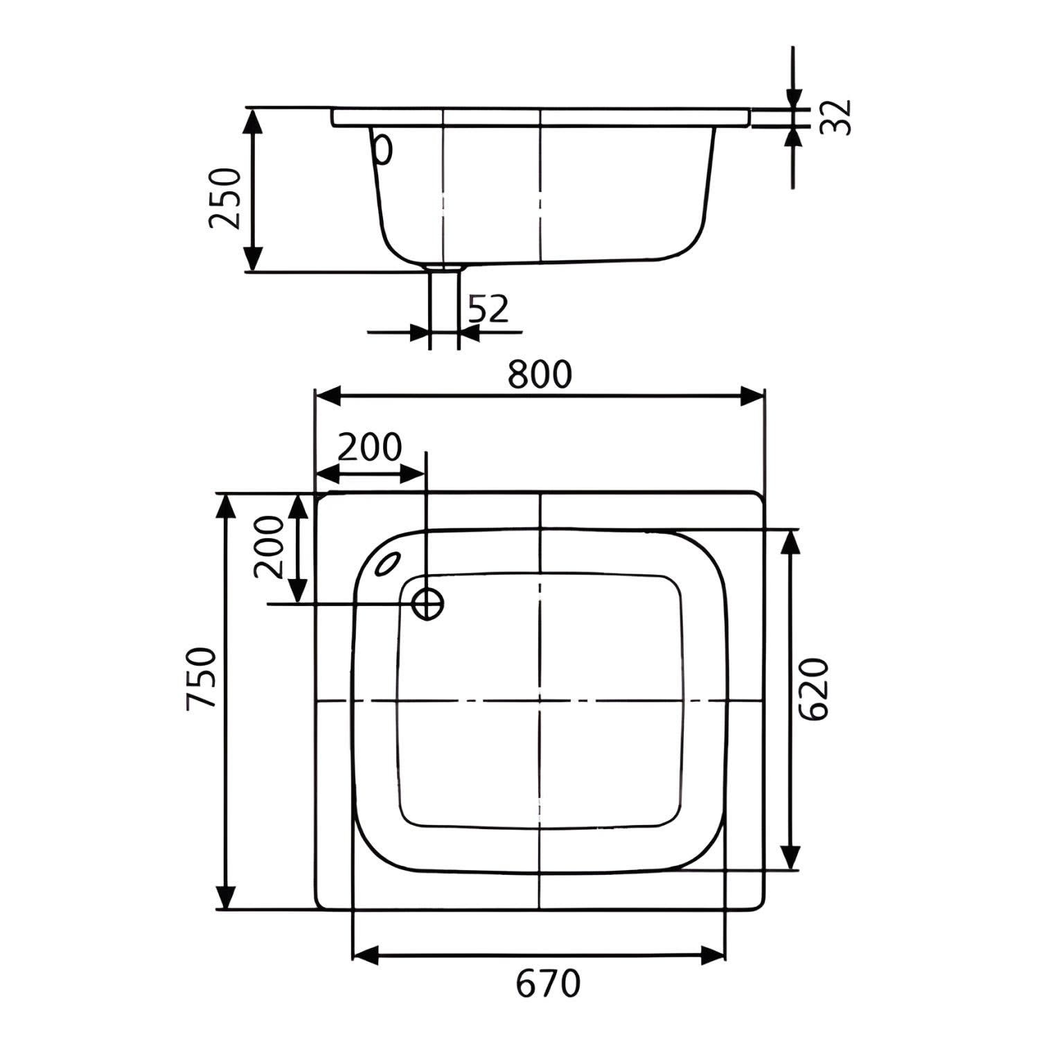 - Ablaufloch Ø 5,2 cm