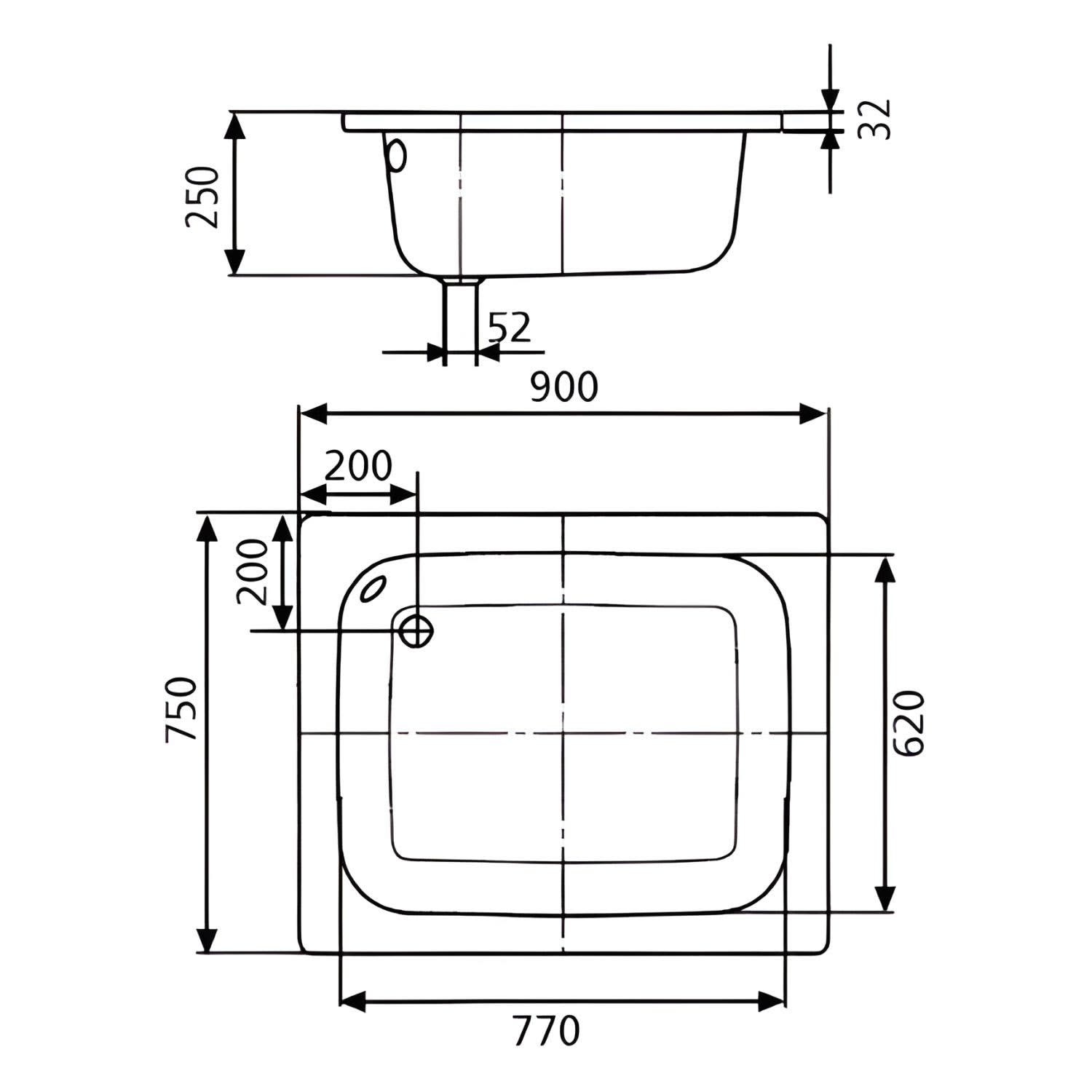 - Ablaufloch Ø 5,2 cm
