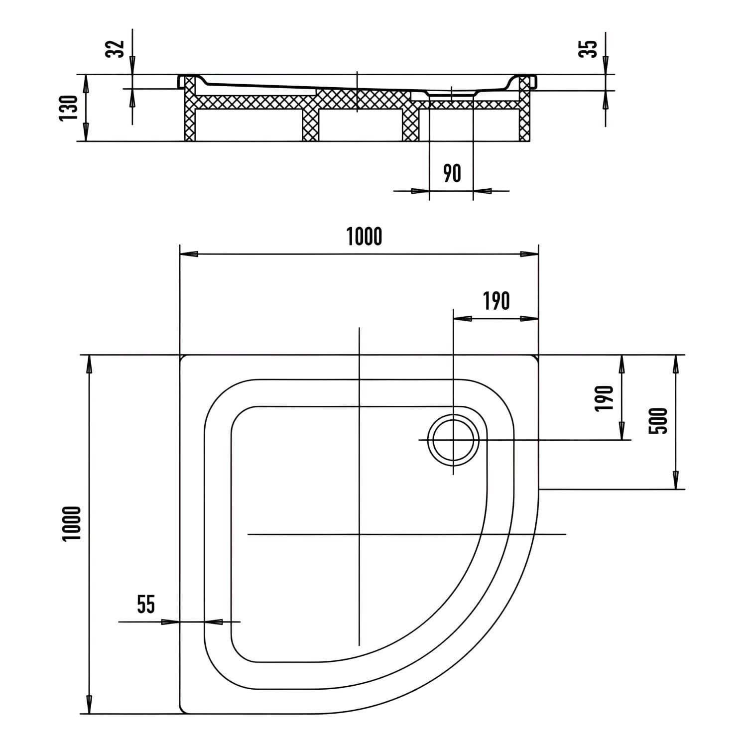 Kaldewei Zirkon 606-2 Viertelkreis-Duschwanne 100 x 100 x 3,5 cm mit Wannenträger