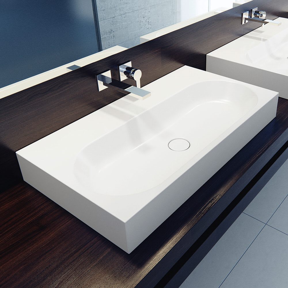 Mit großzügigen Ablageflächen und viel Platz für individuelle Accessoires ist dieser Waschtisch das passendes Gegenstück zur Badewanne Centro.