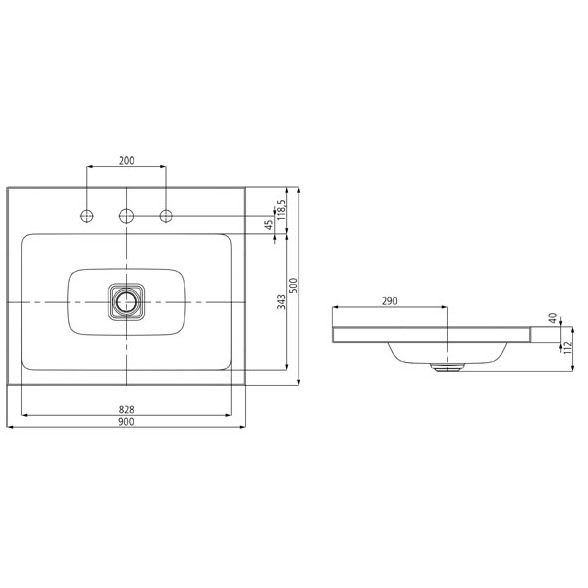 Kaldewei CONO Aufsatzwaschtisch 3084 mit 1 Hahnlochbohrung, 90 cm