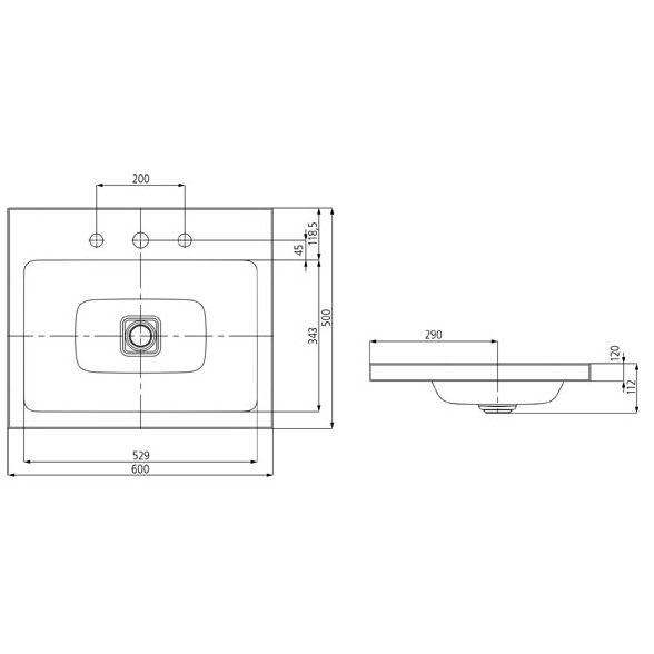 Kaldewei CONO Aufsatzwaschtisch 3085 mit 3 Hahnlochbohrungen, 60 cm