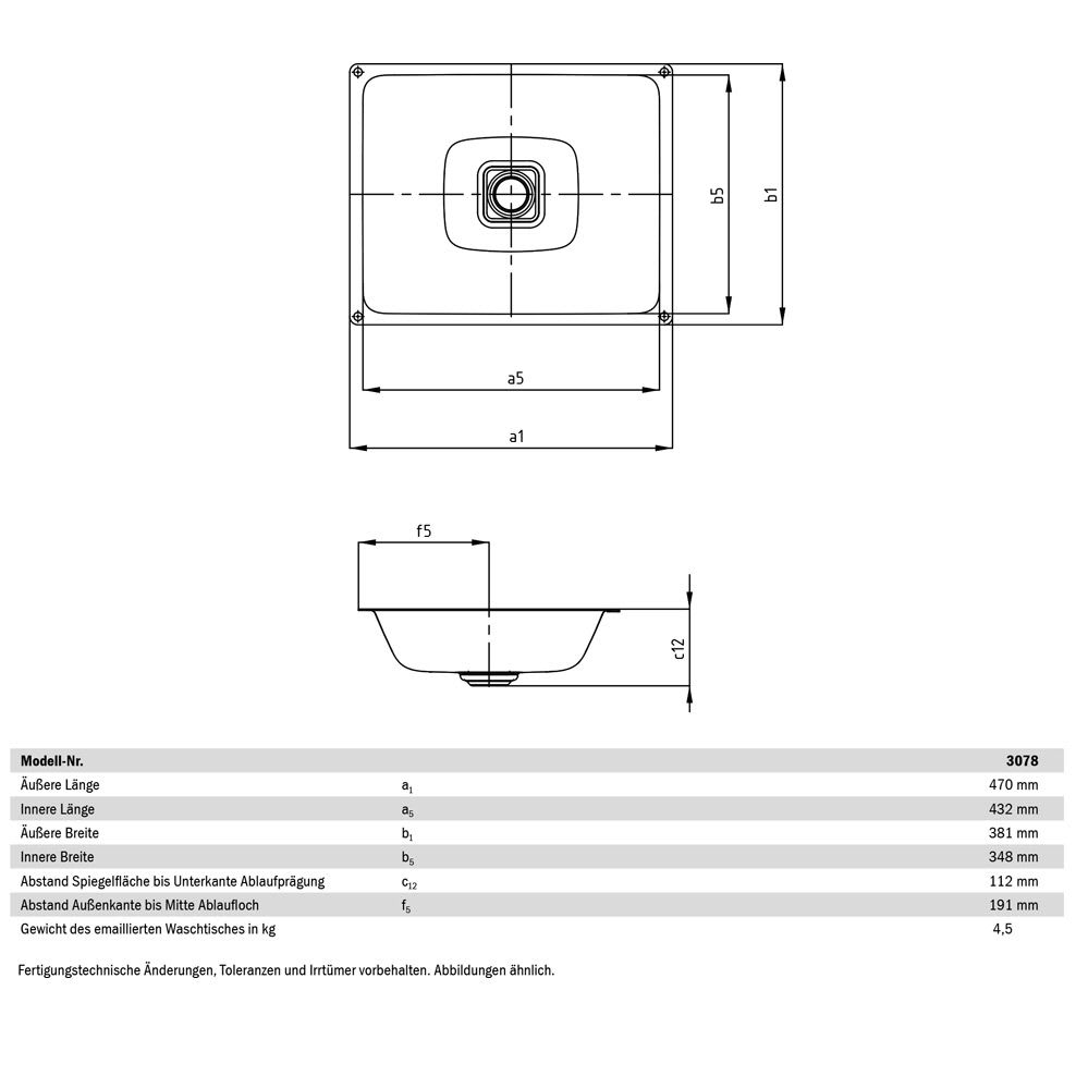 ohne Hahnloch, ohne Überlauf