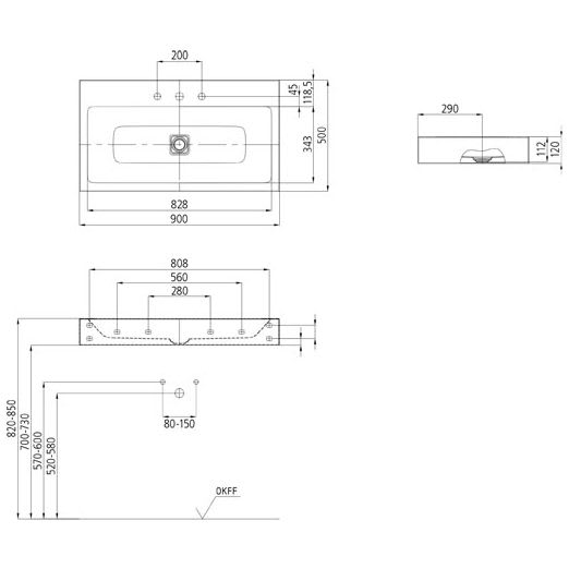 Kaldewei CONO Wandwaschtisch 3090 mit 1 Hahnlochbohrung, 90 cm