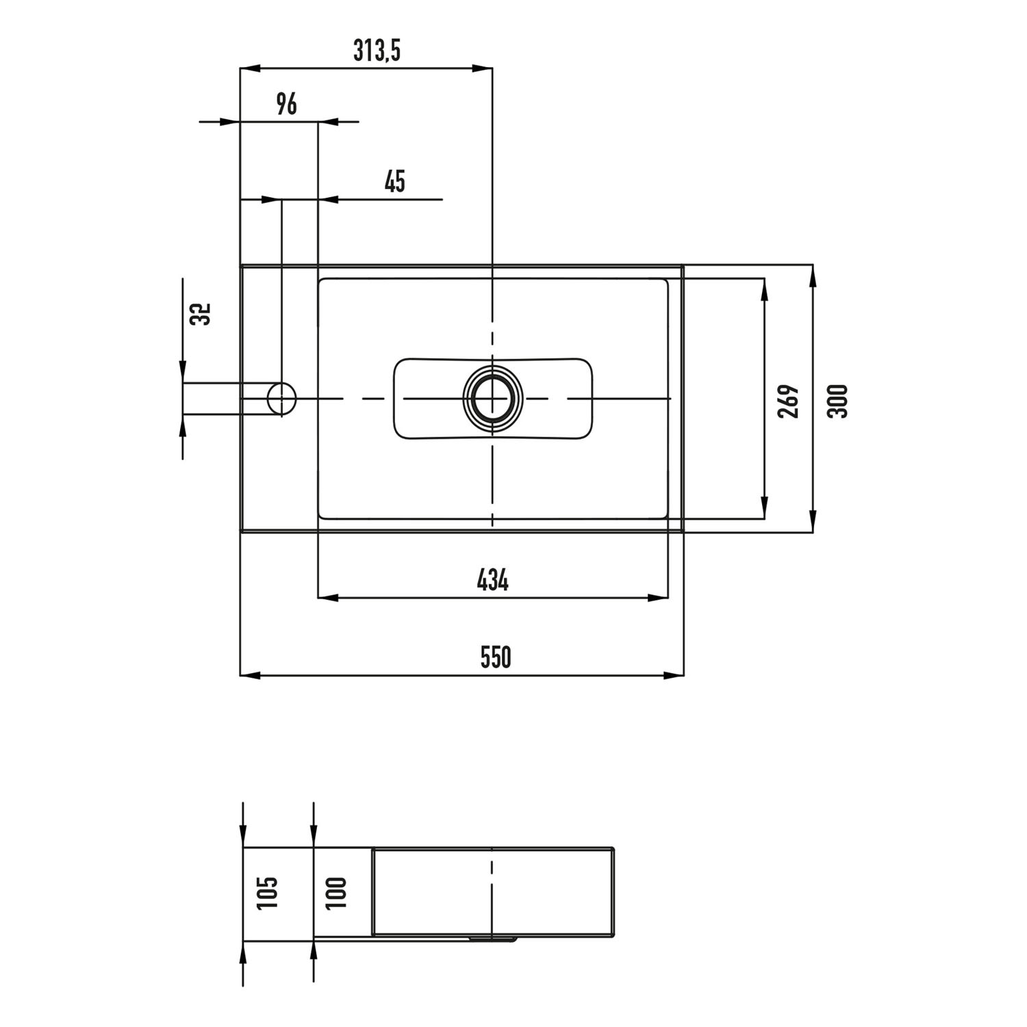 Kaldewei PURO Aufsatz-Handwaschtisch 3166, mit 1 Hahnlochbohrung links, 55 cm